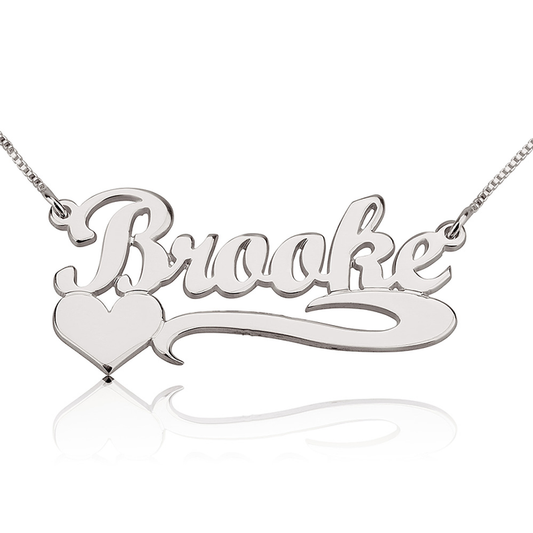 Gold & Silver Personalized Brushed Name with Heart Necklace - FKJNKLU6173