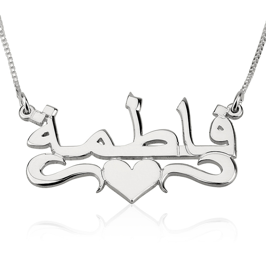 Gold & Silver Personalized Arabic Name with Heart Necklace - FKJNKLU6151