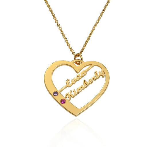 Gold & Silver Personalized Birthstone Heart with Names Necklace - FKJNKLU6160