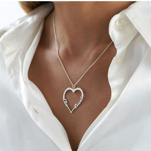 Gold & Silver Personalized Heart Pendant with Two Names Necklace - FKJNKLU6157
