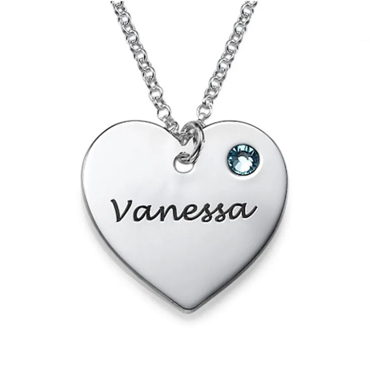 Gold & Silver Personalized Engraved Heart with Birthstone Necklace - FKJNKLU6158