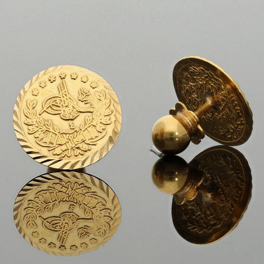 Gold Coin Shaped Stud Earrings 21KT - FKJERN21K2424