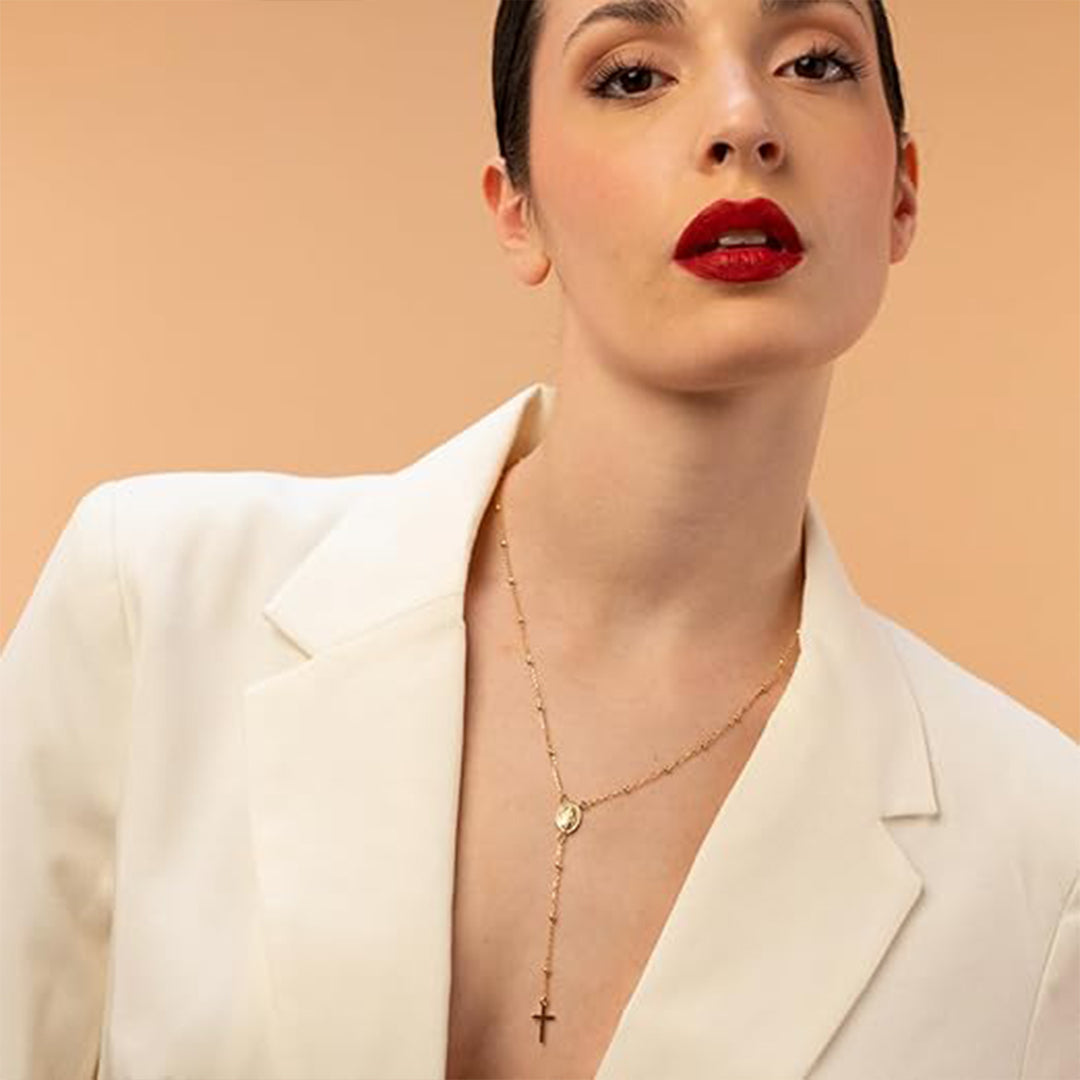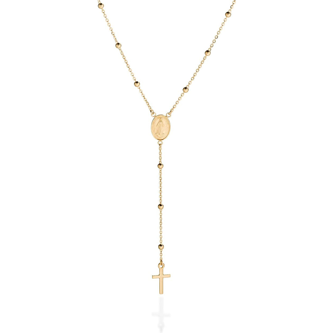 Gold Necklace (Beaded Cross Chain with Rosary Virgin Mary Pendant) 18KT - FKJNKL18K2088