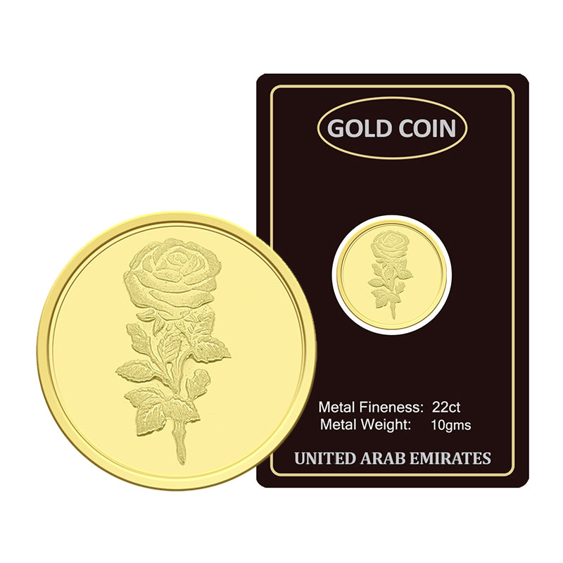 Gold 22KT Flower Design 10 Grams Coin - FKJCON22K2302