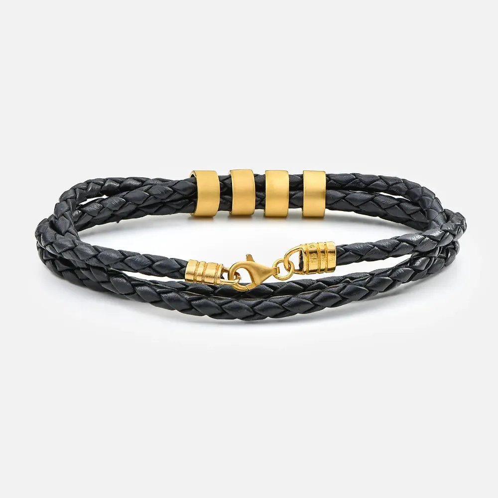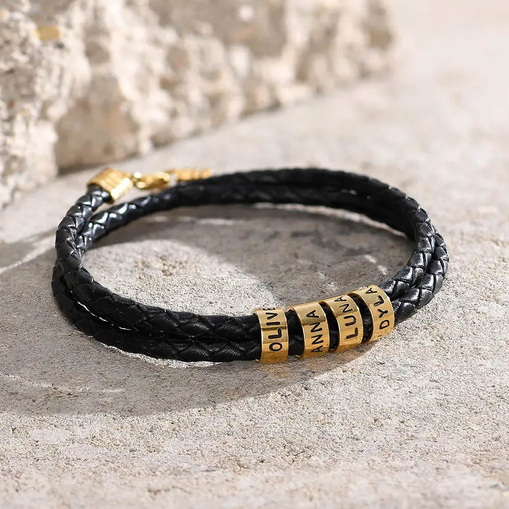 Gold & Silver Personalized Leather for Men with Small Custom Beads Bracelet - FKJBRLU6256