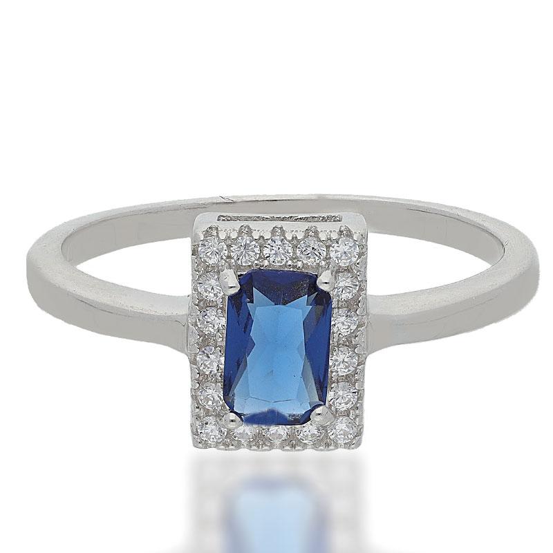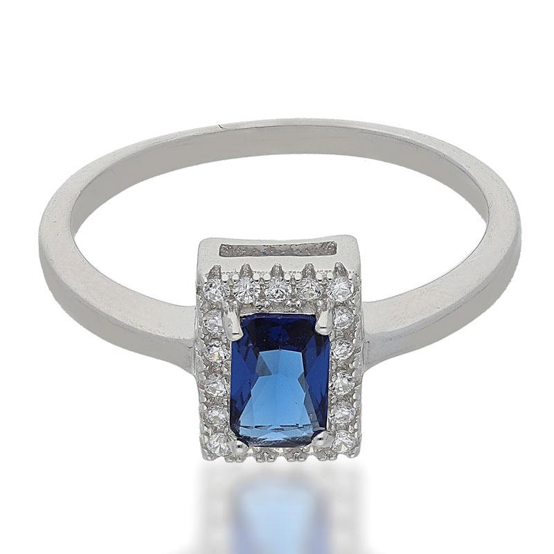 Sterling Silver 925 Blue Solitaire Ring - FKJRNSL2486