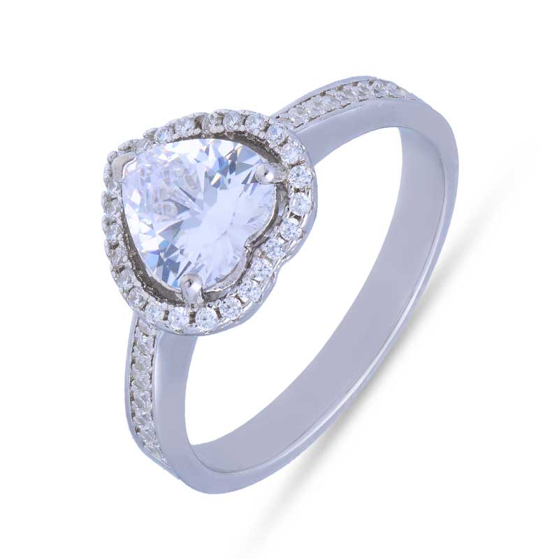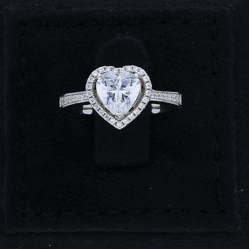 Sterling Silver 925 Heart Shaped Solitaire Ring - FKJRNSLU2076