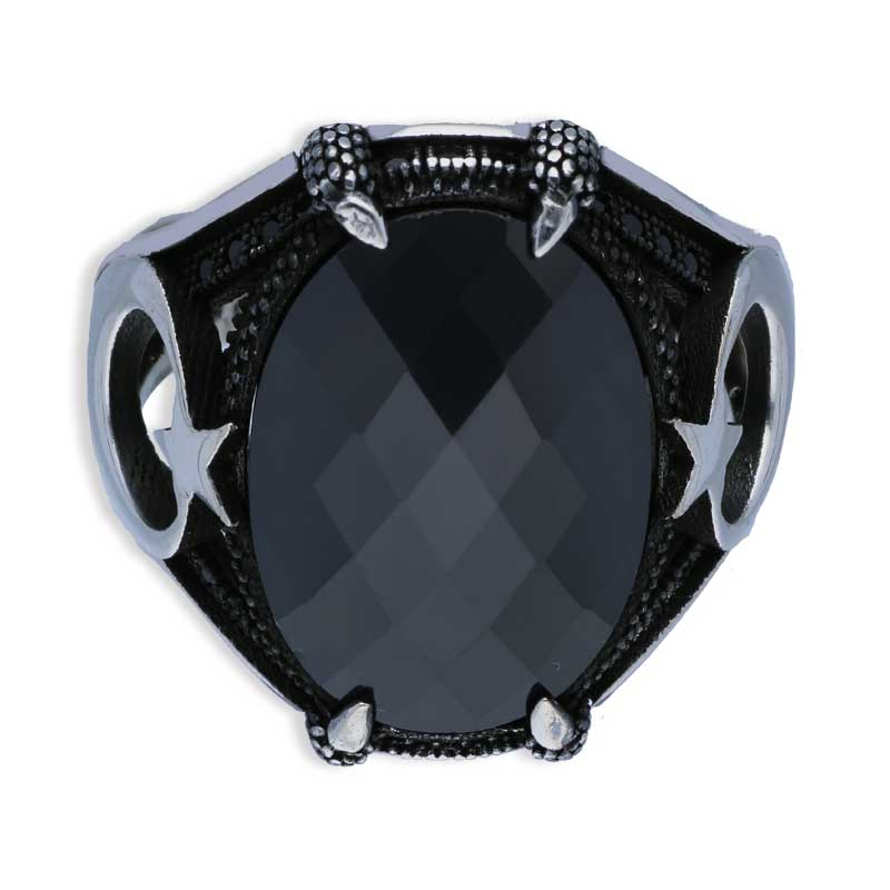 Sterling Silver 925 Men's Star And Moon Solitaire Ring - FKJRNSLU2033
