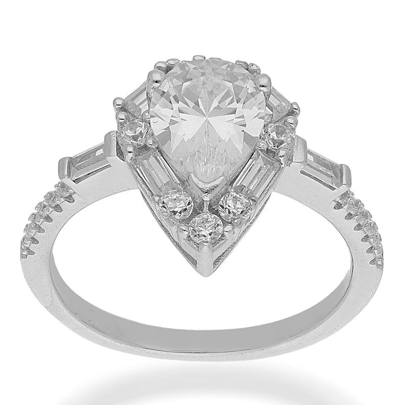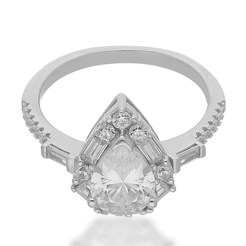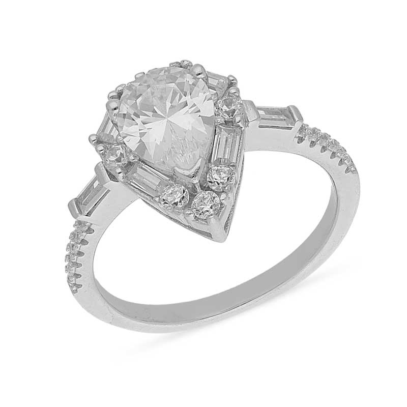 Sterling Silver 925 Pear Shaped Solitaire Ring - FKJRNSL2459