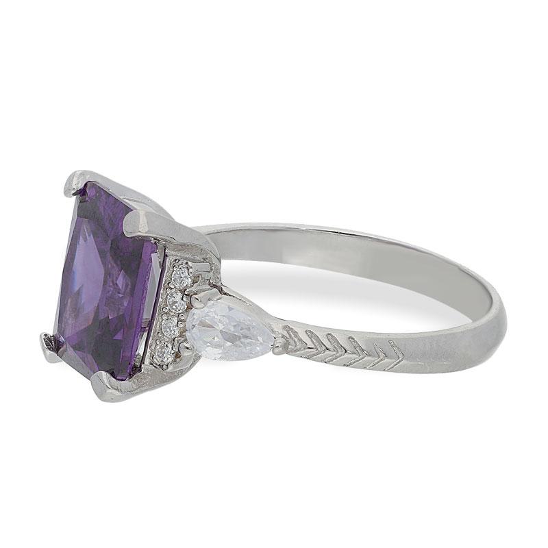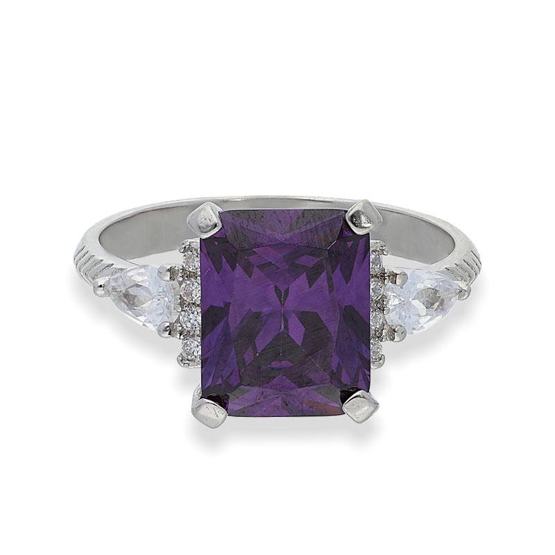 Sterling Silver 925 Purple Solitaire Ring - FKJRNSL2271